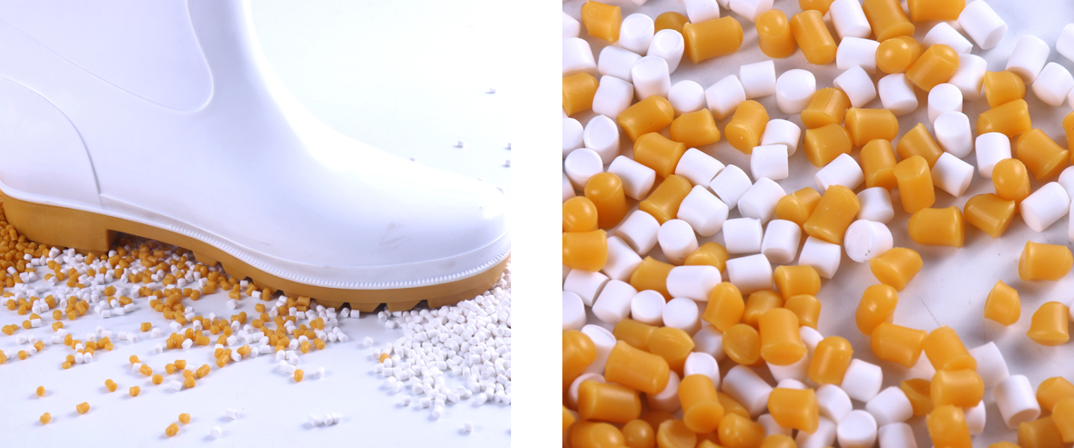 Especially EVA injection soles as a good vulcanization accelerator and can shorten the curing time and eliminate the bad smell of DCP, improve the elasticity, wear resistance, and other physical mechanism while the hardness might get higher, so the dosage should be adjusted appropriately.